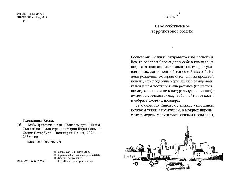 <p> Поездка на раскопки оборачивается для двенадцатилетнего Севы путешествием в прошлое — прямо в XIII век, на шумный и красочный Шёлковый путь. Здесь караваны тянутся сквозь степи и горы, города Востока сияют огнями базаров, а ночи наполнены протяжными песнями ашугов.  </p> <p> Сева будет ночевать под звёздами в караван-сараях, рисовать портреты незнакомцев, встретится с великим мудрецом Руми, а ещё — найдёт настоящего друга и откроет в себе силу стать героем, чтобы однажды вернуться домой. </p> Лауреат Международной детской литературной премии имени В. П. Крапивина, 2024<br> <p> </p> <p style="text-align: right;"> <i>«1248. Приключение на Шёлковом пути» — книга, которая попадает не на полку, а прямо в сердце. </i><i> </i><i> </i><br> <i> Эта история не только и не столько про археологию, Шёлковый путь или экспедицию в Азербайджан, но про раскопки внутри себя: тонкие, терпеливые, настоящие. Про то, как из тишины вечерней кухни, из игры «в неподвижные приключения» рождается путь — пыльный, солнечный, с запахом шафрана и звоном настоящих находок. </i><i> </i><br> <i> </i><i> </i><i> Это история отца и сына, где любовь не произносится вслух, но чувствуется в каждом движении. Здесь путешествие вглубь веков оборачивается метафорой памяти, а детское воображение становится главным инструментом познания. </i><i> </i><i> </i><br> <i> </i><i> «1248» — не просто приключение, а притча о взрослении, об утрате и обретении, о том, как важно уметь смотреть по сторонам, даже когда кажется, что «тут ведь нет ни стен, ни потолка». </i><i> </i><i> </i><br> <i> </i><i> И, возможно, как и герой книги, каждый из нас мечтает найти Шёлковый путь своей жизни. Или хотя бы почувствовать его направление».</i> <br> </p> <p style="text-align: right;"> Фиона Вирфель,<br> соосновательница журнала<br> «Юный искусствовед» </p>