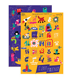 В набор входят адвент-календарь с окошками и плакат для наклеек. В окошках — с оборотной стороны задания, а внутри окошка прячутся наклейки.