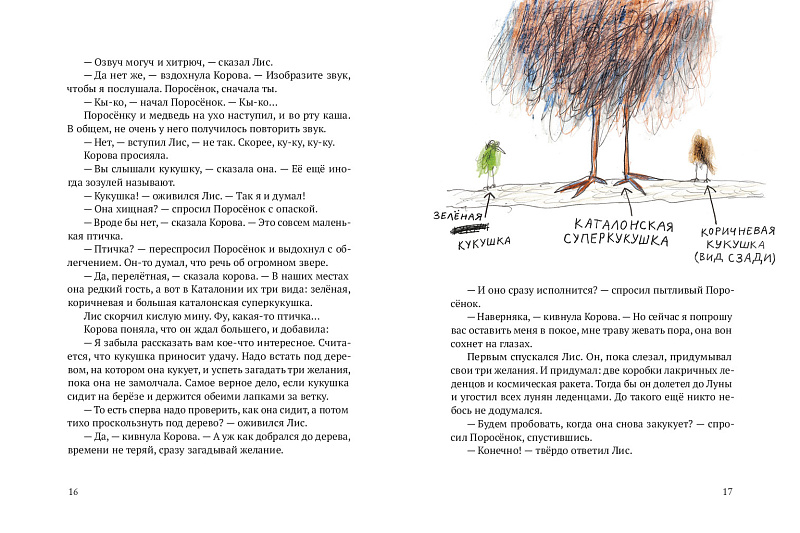 В первой книжке из серии историй о Лисе и Поросёнке мы знакомимся с ними и с другими удивительными персонажами. А кажется, что мы знакомы уже давно: с места в карьер, с первой же страницы, мы отправляемся с героями на поиски кукушки, которая исполняет любые желания, скачем верхом на королевской плюгавой, спасаем урожай редиски от вредной акулиски — грозы огородов, ищем драгоценные лисумруды и поросяхонты и притворяемся французским зелёным жаворонком, чтобы раздобыть йогурт с дыней.
