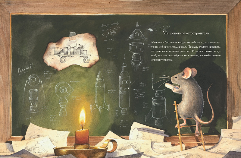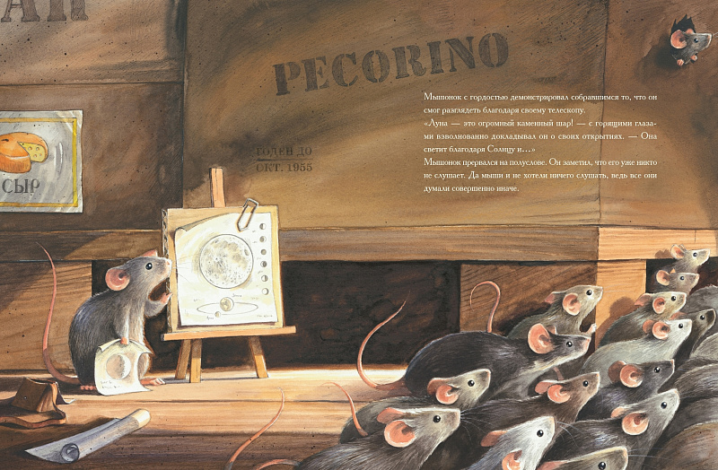 <p> <i>Всего один маленький шаг для мышонка, </i><br> <i> но гигантский скачок в истории космонавтики.</i> </p> <p> Каждую ночь один маленький любознательный мышонок сквозь телескоп наблюдает за Луной. В это же время его сородичи, сплошь во власти сырного помешательства, решают, может ли Луна и вправду быть огромной головкой сыра. Вдохновившись новаторскими достижениями мышиной авиации, мышонок принимает судьбоносное решение: он станет первым мышонком на Луне.<br> </p>