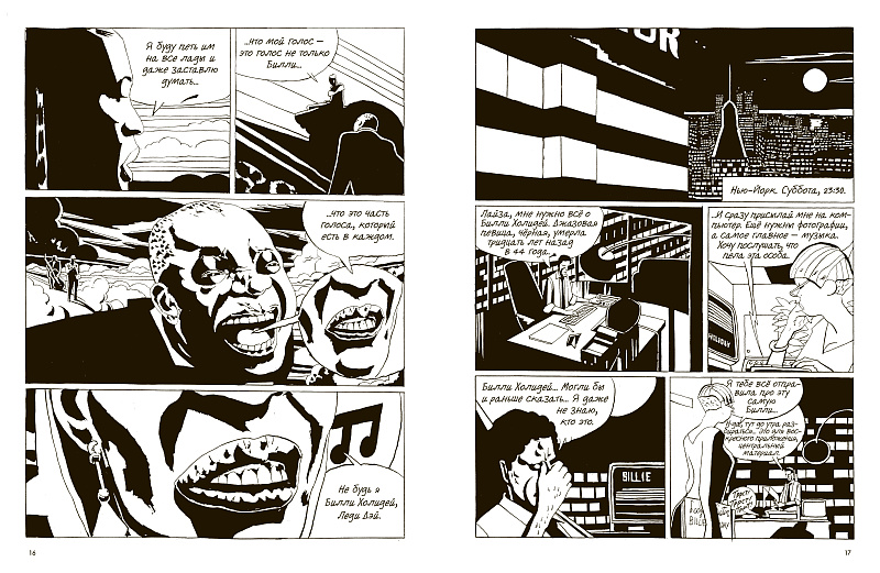 Фигура величайшей джазовой певицы Билли Холидей после её смерти обрела мифический ореол. Судьбу Леди Дэй никто не назовёт простой, но можем ли мы сказать, что знаем о ней настоящей хоть что-то? Кем на самом деле была та, чье имя постоянно пестрело в заголовках скандальных статей и полицейских рапортах?.. Знаменитый аргентинский дуэт — художник Хосе Муньос и сценарист Карлос Сампайо — рассказывает историю необычайно сильной женщины, которая под невыносимым, нескончаемым гнётом расизма и мужского насилия продолжала дарить свой непокорный голос всему миру.<br> <br> <p style="text-align: right;"> <i>Жизнь джазовой певицы Билли Холидей была под стать её песням — от Lover Man до Strange Fruit — и даже хуже. Её талант взращивался на насилии и эксплуатации со стороны мужчин, а также на алкоголе, наркотиках и дискриминации. Эта биография объединяет яркие строки песен и моменты жизни Билли с высококонтрастными чёрно-белыми панелями Муньоса, погружая читателя в угнетающую реальность.</i><br> Library Journal<br> <br> <i>А ещё у неё был смех; да, мы хорошо его помним: смех избалованной женщины, смех ребёнка, смех сдержанный или раскатистый. Смех жизни.</i><br> Франсис Марманд, писатель, литературный и музыкальный критик </p>