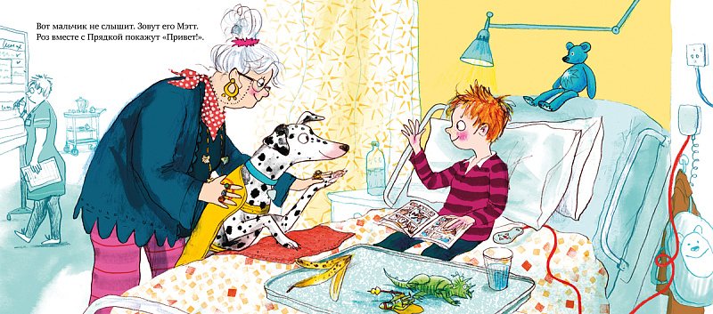 <p> Собака Прядка любит ходить со своей хозяйкой в детскую больницу, и ей все там рады: младенец, малышка, подросток, уставший врач или обеспокоенный родитель – приветливая Прядка развлечёт и поддержит каждого. Но работа больничной собаки продолжается и на улице: когда одному из пациентов грозит опасность, внимательная и храбрая Прядка приходит на помощь. </p>