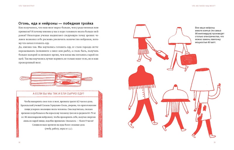 Книга «Что там внутри?» написана при участии команды нейробиологов, философов и психологов. Её авторы исследуют эволюцию мозга человека от рождения до старости, открывают невероятную реальность, построенную с помощью чувств, объясняют, как мы учимся, принимаем решения и действуем и как мы связаны с другими людьми и другими мозгами.