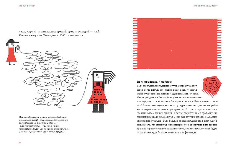 Сегодня мы знаем, что наши мысли, чувства, решения, озарения — результат работы мозга во взаимодействии с другими органами и частями тела. Но как рождается мысль? Как функционирует мозг? Как сохраняет способность к обучению вплоть до старости? Как мозг чувствует, изобретает, творит и делает каждого из нас уникальной и неповторимой личностью?<br> Книга «Что там внутри?» написана при участии команды нейробиологов, философов и психологов. Её авторы исследуют эволюцию мозга человека от рождения до старости, открывают невероятную реальность, построенную с помощью чувств, объясняют, как мы учимся, принимаем решения и действуем и как мы связаны с другими людьми и другими мозгами.<br> И если, как утверждается в этой книге, на развитие мозга влияет любой жизненный опыт, мы надеемся, что знакомство с ней сделает ваш мозг еще более любознательным и счастливым! <br> <br> <p> Несколько лет назад в Португалии, а затем на русском в «Самокате» вышла книга об удивительном мире природы— «Шагни за порог. Путеводитель по природе». За ней авторы и издатели решили сделать ответную книгу — про то, как важно заглянуть куда-нибудь внутрь. Но о чем могла бы быть эта книга? О человеческом теле? О тайнах, скрытых в центре Земли? Но больше других авторов вдохновила идея написать книгу о мозге, чтобы помочь самим себе и читателям лучше понять этот удивительный феномен, благодаря которому мы имеем возможность чувствовать, помнить, изучать, сравнивать, принимать решения, действовать, творить... (список глаголов бесконечен). </p> <p> К работе над книгой авторы привлекли большую команду экспертов. Их специализации, регалии, тезисы также перечислены в книге. Также читатели найдут в конце книги и большой список вышедшей на русском литературы о работе мозга, видеолекций, статей и ресурсов на эту тему. </p> <p> На русском языке книга вышла при информационной поддержке культурно-просветительского центра АРХЭ. </p> <h2>5 причин купить книгу «Что там внутри?»:</h2> <p> </p> <ul> <li> <p> Понятный и остроумный нонфикшн для детей и подростков о том, как работает наш мозг и об истории представлений человечества о мозге; </p> </li> <li> <p> Очень стильная и наглядная книга — серьезная информация подается здесь не только текстом, но и в иллюстрации, схемах, картах (многие из них хочется разобрать на мемы!); </p> </li> <li> <p> Чёткая структура книги — легко найти ответ на интересующий вопрос, можно использовать как справочник или читать книгу последовательно; </p> </li> <li> <p> В работе над книгой принимала участие большая команда ученых — психологов, медиков, нейрофизиологов; </p> </li> <li> <p> Очень много интересных практических заданий, игр, упражнений, которые помогают понять информацию о мозге и на себе её испытать!<br> </p> </li> </ul> <br>