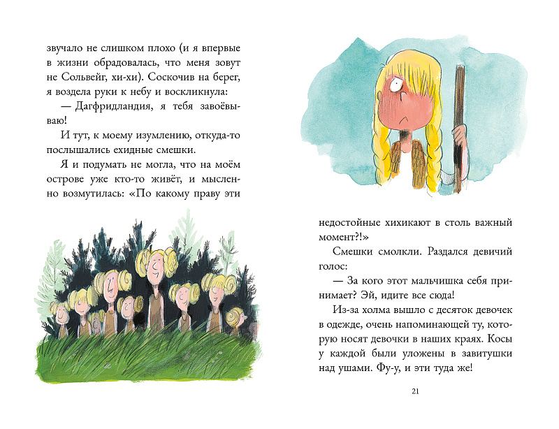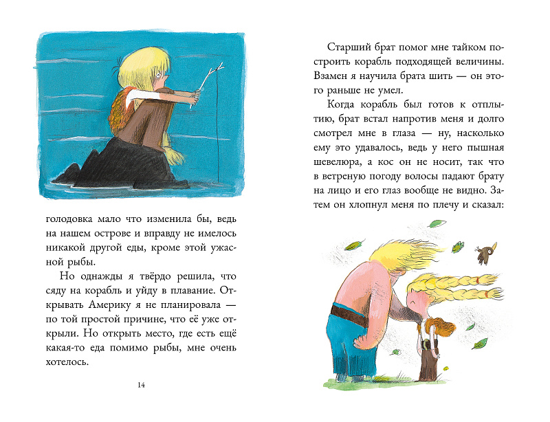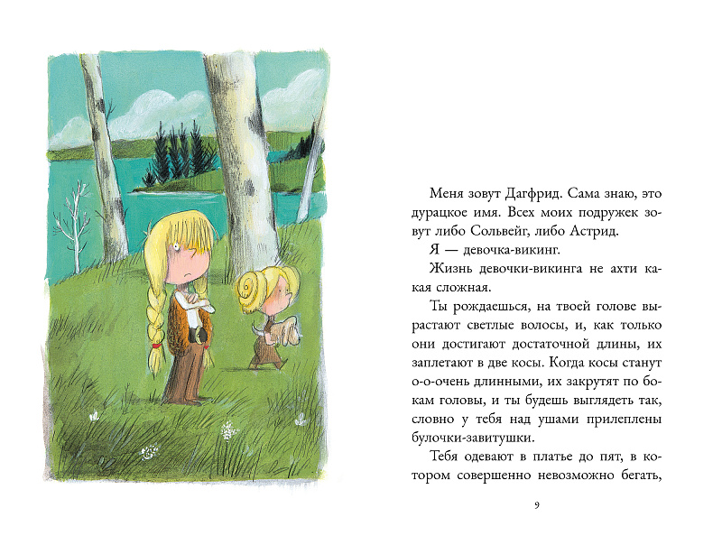 <p> Многое в собственной жизни удручает Дагфрид. Одно имя чего стоит! </p> <p> Да и в остальном участь девочки-викинга счастливой не назовёшь: приходится заплетать волосы в косы и укладывать их в завитушки над ушами, носить платья до пят и вялить рыбу, единственную пищу викингов. А ещё девочкам не разрешают выходить в море и открывать Америку! Но вечно так продолжаться не могло. Настал день, когда рыба вконец опротивела Дагфрид...  </p>
