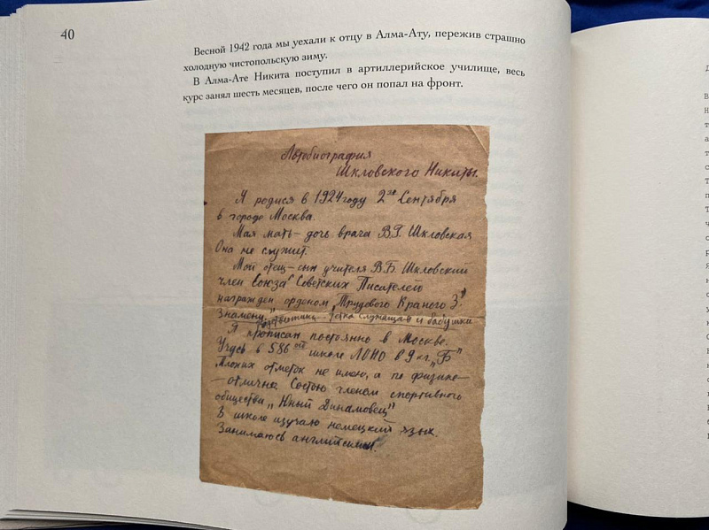 Книга о Никите Шкловском, сыне писателя Виктора Борисовича Шкловского, погибшего в самом конце войны, в 1945 году в возрасте 21 года. Книга основана на материалах семейного архива, который был любовно собран матерью Василисой Георгиевной и сохранен сестрой Варварой Викторовной. Книга ценна своей живой документальностью, она дает возможность современным детям увидеть, чем жили такие же мальчики и девочки, как они, девяносто лет назад.<br /> Для среднего и старшего школьного возраста.