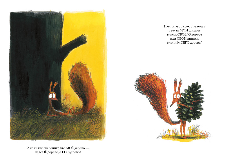 Иногда единственный способ жить спокойно — это построить забор. Даже не иногда, а в большинстве случаев. И не просто забор, а каменный и высокий. Особенно когда ты белка, и у тебя есть дерево, и на нём растут шишки.<br> Книга о самых главных правилах жизни, которым не учат в школе. Оливье Таллек проиллюстрировал более шестидесяти книг, они переведены на 15 языков. На русском выходили несколько его серий: про Большого и Маленького Волка, про Риту и Бублика, «Кто такой какой» и др.<br> У книги про белку тоже будет продолжение. Оливье как никто умеет говорить с малышами об этике и философии, и его книги интересно и смешно читать в любом возрасте. Многослойная проблематика книги интересна как 3х летним детям (в качестве руководства к использованию местоимения «мой», а также понимания истинной функции забора), так и взрослым, для размышления.<br> <h2>5 причин купить книгу «Это мое дерево»:</h2> <p> </p> <ul> <li> <p> Весёлое совместное чтение для детей 2-6 лет </p> </li> <li> <p> Сюжет предполагает беседу после прочтения – о собственности, о жадности, о границах </p> </li> <li> <p> Подходит для начинающих самостоятельных  читателей </p> </li> <li> <p> У книги будет продолжение ― будет новая встреча со смешным персонажем </p> </li> <li> Обаятельный стиль иллюстраций, который хочется повторить.</li> </ul> <br>