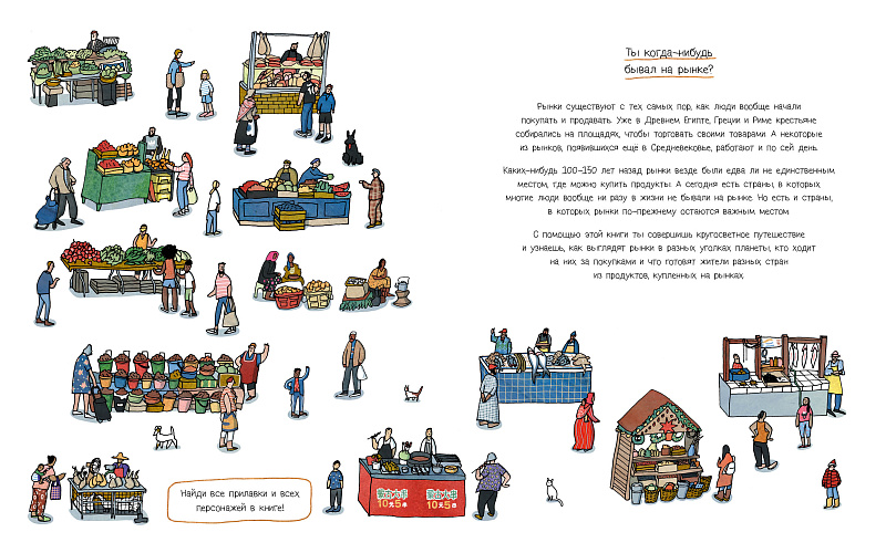 Открывай книгу и отправляйся в кругосветное гастрономическое путешествие по 24 фермерским рынкам в 12 странах мира — от Европы до Африки. Ты узнаешь, как выглядят рынки в разных уголках планеты и что на них можно купить. А ещё тебя ждут увлекательные квесты на каждом из рынков и рецепты национальных блюд.