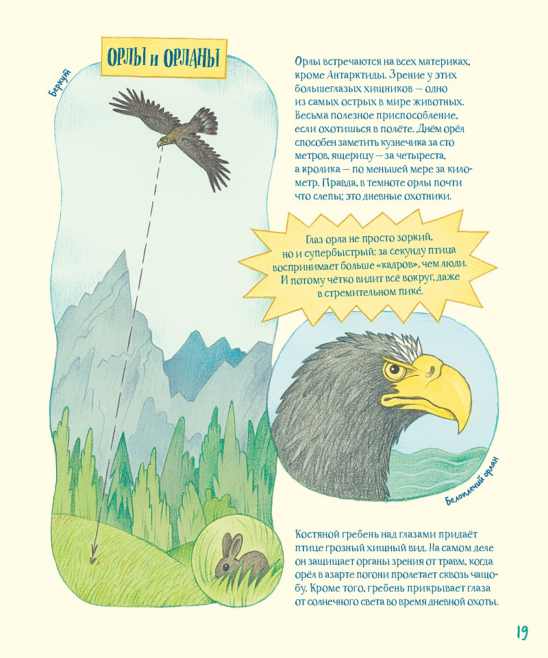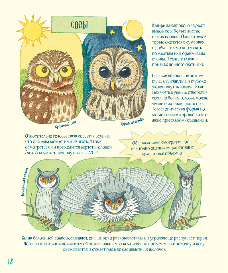 Огромные глаза, глаза, меняющиеся за секунды или по временам года, глаза, скрытые маской, ложные и стебельчатые — каких только глаз нет в животном мире! Глаза могут рассказать многое об образе жизни животного, а ещё ими можно разговаривать, обманывать врагов, выражать своё настроение и даже… глотать!<br> Вас ждёт невероятное собрание интереснейших фактов и самых причудливых животных. Это уже третья книга авторов, посвященная потрясающим способностям животных — первая называлась «Невероятные носы», а вторая — «Удивительные уши». Так что смотрите в оба!<br>