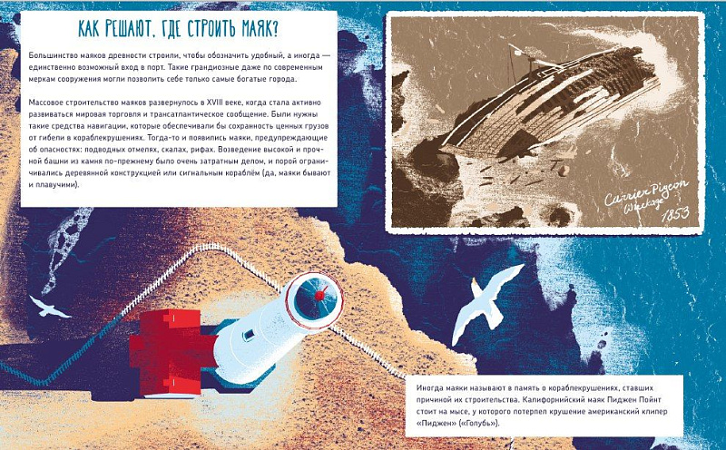 Художник и дизайнер Роман Беляев, с детства неравнодушный к разным особенным инженерным сооружениям, придумал и создал удивительную серию про самые интересные изобретения человека в области инженерного строительства. Книга «Как работает маяк» открывает серию, в которую войдут позже истории мостов, мельниц и других необыкновенных сооружений.