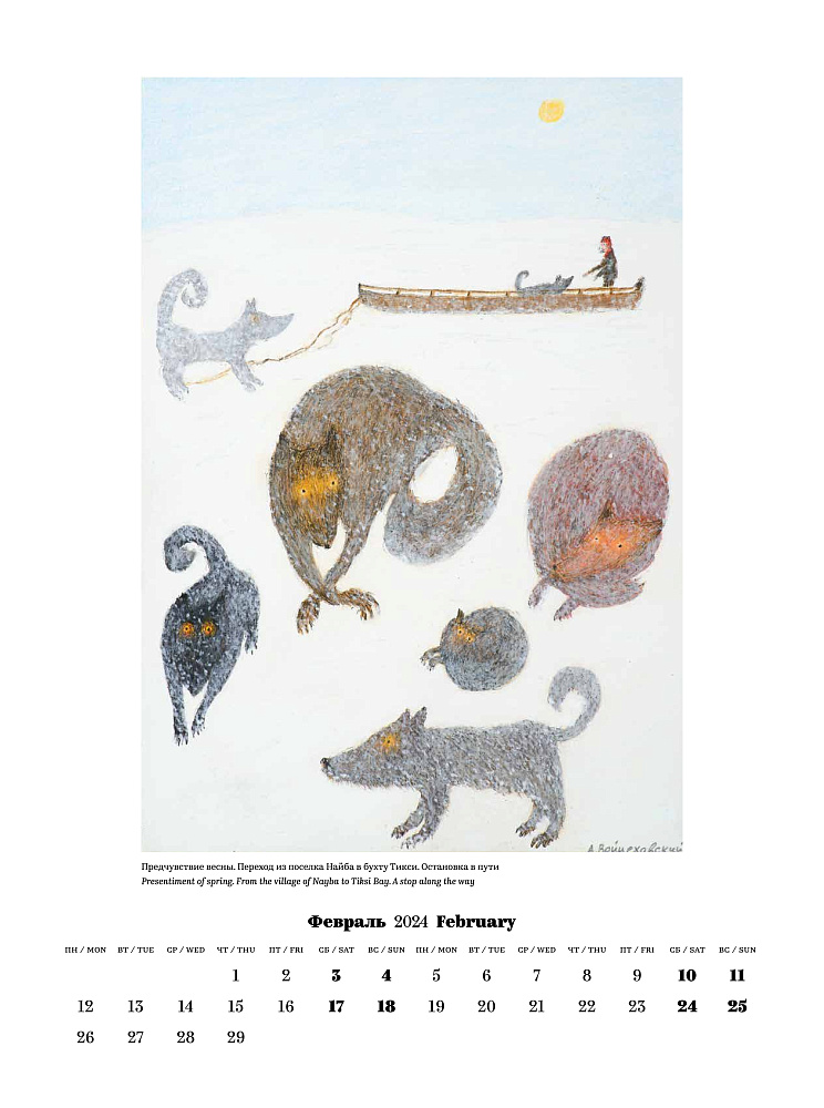 12 картин Александра Войцеховского и календарь на 2024 год — сочетание замечательное. Сюжетные полотна в стиле наив-арт и персонажи, вокруг каждого из которых витает целый рассказ, история. Позитивный и ярко-художественный календарь подойдет и для строгого офиса, и для детской. Тираж небольшой, количество календарей ограничено, не теряйтесь. Крупный формат настенного календаря, крепление — пружина.
