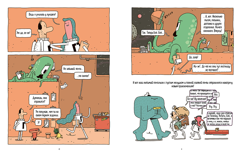 Космический почтальон Боб, уже знакомый читателям по двум предыдущим книгам, продолжает бороздить просторы Вселенной, развозя почту и преодолевая всевозможные трудности. На этот раз его день не задался с самого начала: он не успел позавтракать и приехал на работу голодный. Во время насыщенного рабочего дня он пытается урвать возможность хоть чуть-чуть перекусить, но то ему предлагают личинки с метеоритами, то нужно срочно спасать друга, то долгожданная закуска оказывается такой горячей, что обжигает бедному Бобу язык… Но, как всегда, благодаря находчивости и терпению наш герой с блеском справляется со всеми испытаниями и возвращается на базу, где вожделенный сандвич уже совсем близок…