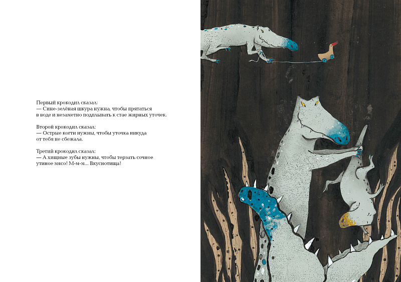 Кра-Кра — крокодил, которого вырастили утки. Он ходит как утка, говорит как утка и плавает как утка. Но однажды в их прудике появляются трое незнакомцев, которые выглядят в точности как Кра-Кра. И перед героем встаёт непростой вопрос: кто же он всё-таки — крокодил или утка? Трогательная и смешная история о поиске и принятии себя. О терпимости и способности полюбить кого-то, кто на тебя совсем не похож. И о том, что дети намного мудрее взрослых.