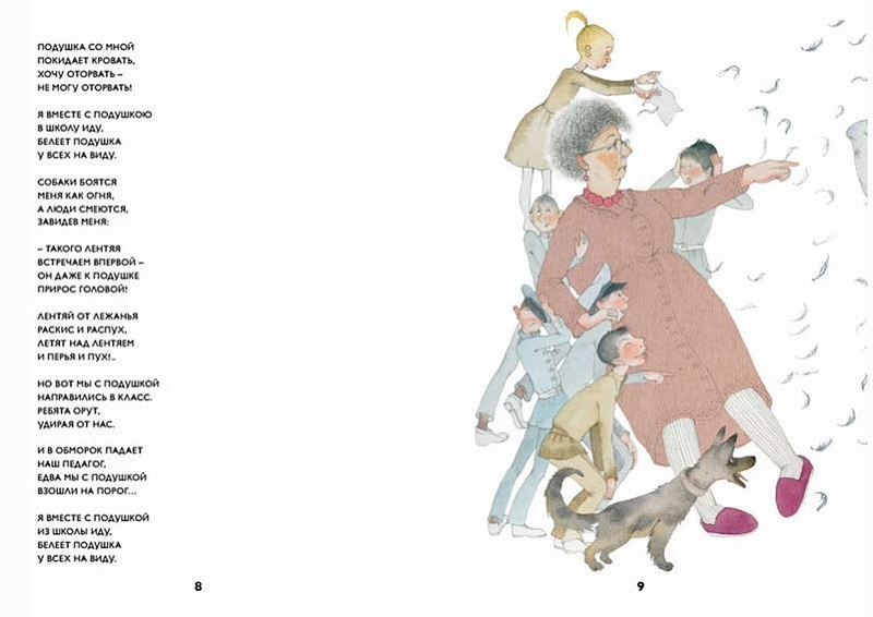 Стихи Владимира Александровича Лифшица (1913-1978) живут в памяти поколений 50-70-х гг. в виде отдельных строк. Далеко не все знают, что он автор всенародно известной песенки "Пять минут" из кинофильма "Карнавальная ночь". И сегодня его стихи хочется выучить, разобрать на строчки, а то и разыграть из них небольшое представление. В сборник «Лентяй с подушкой», помимо одноимённого стихотворения, включены самые известные - «Слон и Зоя», «Медведи и месяц», «Котище», «Тимоша», «Футбольный мяч».