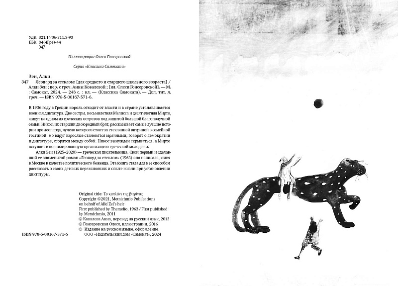 <p> В 1936 году в Греции король отходит от власти и в стране устанавливается военная диктатура. Две сестры, восьмилетняя Мелисса и десятилетняя Мирто, живут на одном из греческих островов под защитой большой благополучной семьи: дедушки — великого знатока древней истории, — родителей, тети и горничной. Но только Никос, их старший двоюродный брат, рассказывает самые лучшие истории про леопарда, чучело которого стоит за стеклянной витриной в семейной гостиной. Но вдруг взрослые становятся мрачными, говорят о демократии и диктатуре, ссорятся между собой. Никос вынужден скрываться, а Мирто вступает в военизированную организацию греческой молодежи. </p> <h2> 5 причин купить книгу «Леопард за стеклом»:</h2> <ul> <li> <p> Домашняя и полная надежды история двух сестёр – свидетелей и участников страшных событий греческого ХХ века; </p> </li> <li> <p> Когда сказки о леопарде в витрине могут помочь детям пережить любые революции, не потеряв ни чести, ни детства; </p> </li> <li> <p> Это роман о детском опыте жизни при наступившей диктатуре; </p> </li> <li> <p> Алки Зеи – известнейшая детская писательница из Греции, её книги входят в школьные программы разных стран; </p> </li> <li>Это переиздание знаменитого романа Алки Зеи, которое в 1970-х в СССР было известно под названием «Наш брат Никос».<br> </li> </ul> <p> <b>ОТЗЫВЫ ПРЕССЫ И ЧИТАТЕЛЕЙ:</b> </p> <p style="text-align: right;"> <i>«Книга «Леопард за стеклом» — не столько об исторических событиях, сколько о переживаниях ребенка, который пытается в них разобраться, который пытается понять, почему рушится привычный и уютный мир, где были истории про замершего за стеклом леопарда и о древних героях».</i><b><br> </b> </p> <p style="text-align: right;"> <a href="https://www.papmambook.ru/articles/2516/" rel="nofollow"><span style="color: #000000;"><u>Papmambook</u></span></a> </p> <p style="text-align: right;"> <i>«Но вы, наверно, скажете: «Что может знать о диктатуре совсем еще малышка — такая, как Мелисса?». О демократии, свободе слова и фашизме, о справедливости, неравенстве и будущем она не знает ровным счетом ничего. Примерно столько, в сущности, известно большей части взрослых, которые вдруг стали так похожи на глупых и растерянных детей, что их уж точно не спросить об этом. А если взрослые к тому же не хотят, чтоб дети «что-нибудь узнали», они им вечно говорят: «Идите, поиграйте». Наверно, так они сказали Алки Зеи (1925 — 2020), когда в тот страшный-страшный год она спросила их о том, что значит «демократия», что значит «диктатура»  и прочие красивые слова. А двадцать восемь лет спустя ответила сама, создав роман, «написанный» Мелиссой, которая пытается понять, ну как же ей теперь себя вести, как относиться к тем и этим, что чувствовать, что думать, и можно ли вернуть всё то, что было, и надо ли смириться с тем, что стало? Всё так запуталось, всё так переменилось с тех пор, как леопард открыл свой черный глаз...»</i> </p> <p style="text-align: right;"> <a rel="nofollow" href="https://rara-rara.ru/menu-texts/igra_vslepuyu"><span style="color: #000000;"><u>Rara Avis</u></span></a> </p>