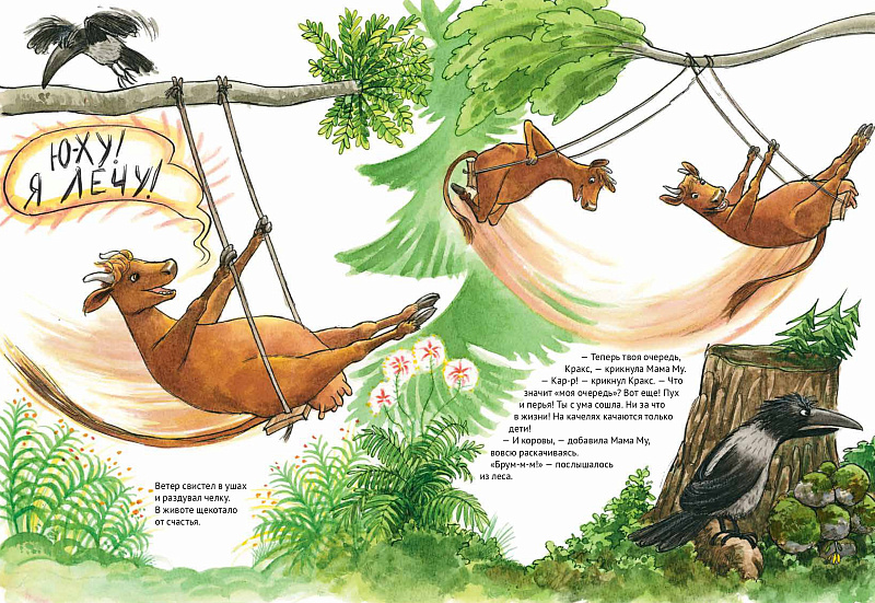 На дворе был отличный летний денек. Светило солнышко, пели птички, жужжали мухи. Коровы паслись на лугу. Все, кроме одной. Что затеяла Мама Му на этот раз? Зачем ей доска и веревки? И почему Кракс опять недоволен? Как бы то ни было, друзьям всегда весело вдвоем, приключения не кончаются!