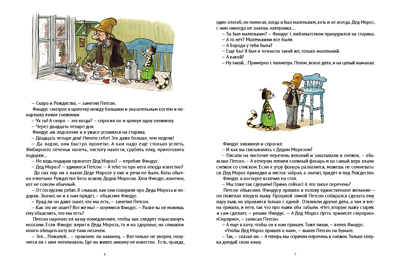 <p> Это новый перевод горячо любимой читателями книги. В нем исправлены неточности и пропуски. </p> <p> Старик Петсон и котенок Финдус готовятся к Рождеству. «Какое же Рождество без Деда Мороза?» — думает Финдус. «Но ведь Деда Мороза не существует, где его взять?..» — вздыхает Петсон. И тут ему в голову приходит блестящая идея: он сам сконструирует говорящего Деда Мороза! Мечта Фидуса сбылась, но, кажется, изобретение сработало не совсем не так, как думал Петсон… Так что же случилось на самом деле? </p>