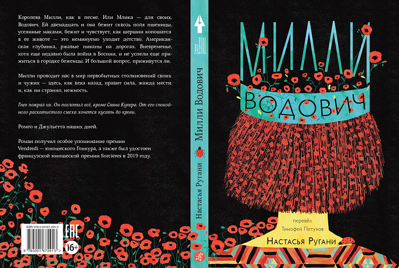 • Мы издали книгу «Милли Водович» в двух обложках. Внутри они абсолютно идентичны. Обложку «Милли Водович. Цветы» создали французы, а эту — мы. Благодаря этой обложке мы смотрим на Милли вблизи, прямо в затылок, так что видны даже божьи коровки в волосах. Эта обложка берёт в фокус именно главную героиню. Мы и читаем этот роман очень по-разному в эти мрачные страшные дни, так что нам показалось важным сохранить оба взгляда. Они дополняют друг друга.