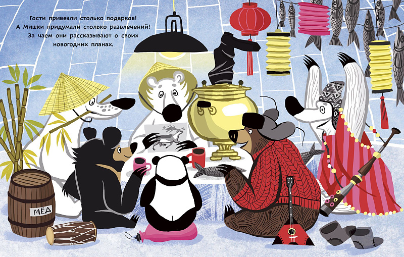 <p> Под Новый год в гости к Мишкам приехали родственники: панда из Китая, гималайский мишка с Тибета и суровый русский медведь. Ведь только здесь, на Севере, можно вкусить все радости зимних каникул: прокатиться на оленях, окунуться в ледяную прорубь, посостязаться в скорости со снежной лавиной, а потом и со снежным человеком... Да еще и Дед Мороз заезжает в гости! НЕЗАБЫВАЕМЫЕ впечатления! </p> <p> В «Самокате» уже выходила книга Катерины Горелик о летних приключениях мишек — «Мишки на каникулах», полная юмора и узнаваемых ситуаций из жизни отдыхающих. Истории про зимние приключения получились не менее забавными и красивыми! </p> <p> Молодая и талантливая русская иллюстратор Катерина Горелик рисует смешные и стильные книжки-картинки, которые интересны не только российскому читателю. Права на серию ее книг о мишках уже проданы в несколько стран мира. </p>