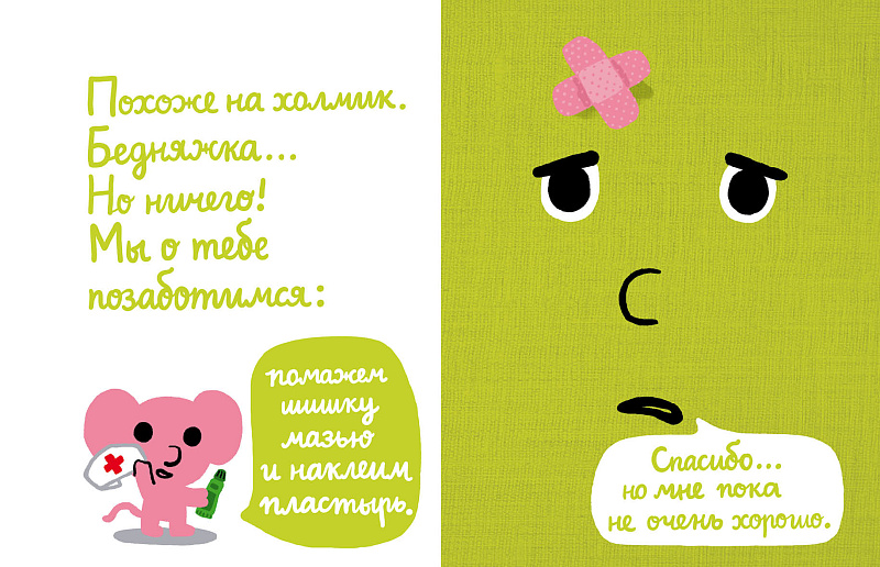 Книжка ушиблась, заболела и кажется абсолютно несчастной. Как сделать так, чтобы ей самой захотелось поправиться и вновь радоваться жизни? И чем ей можно действительно помочь? Уход, забота и немного мотивации вылезти из постели поскорее – вот простой рецепт, который пригодится и сверхтревожным родителям, и детям как минимум от полутора лет.