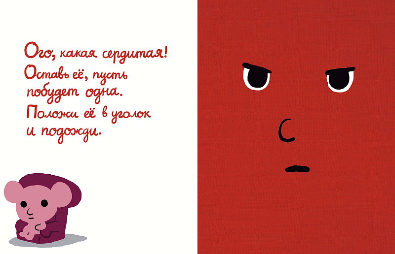 Наша книжка поможет ребёнку лучше понять природу гнева и научиться с ней правильно себя вести. Формат, рисунки, главный герой-мышонок — всё в книге сделано для того, чтобы малыш полюбил книжку и, играя с ней, научился находить выход из ситуации.