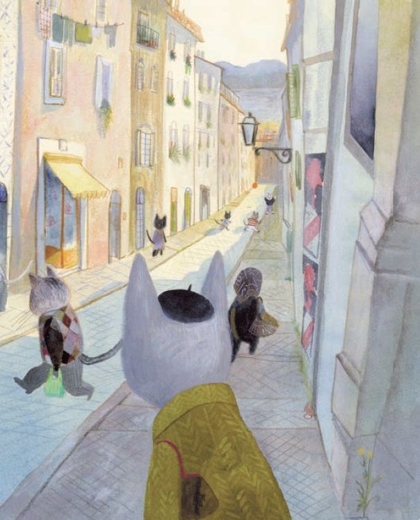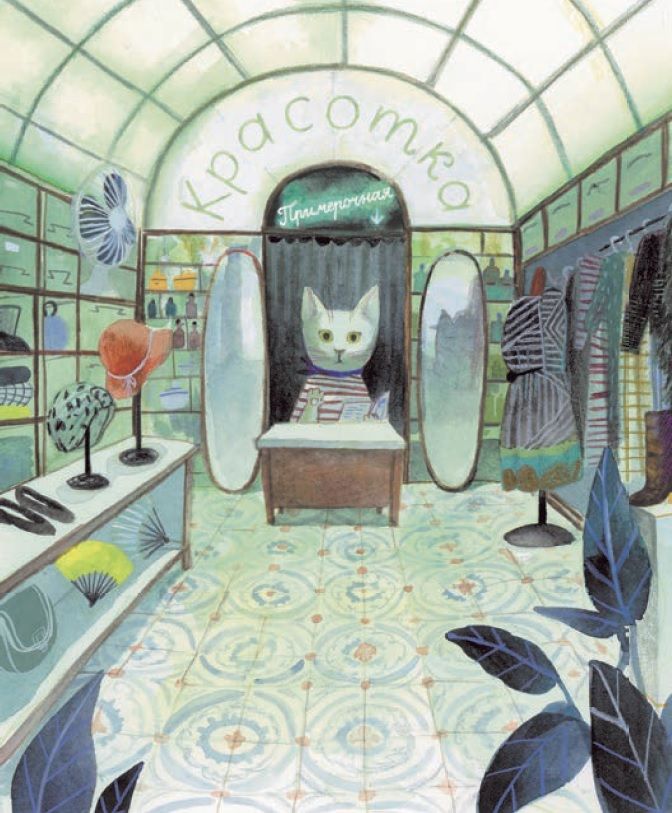 Текст здесь лаконичен, и всю палитру чувств, буйство эмоций — и много красоты — несут иллюстрации. Утренний туман и утренние надежды, грустный стук дождя за окном и неверный свет вечерних фонарей… а вот и сам господин Нарцисс: отражается в витрине в полный рост — от безупречной шляпы до любовно начищенных туфель, идеально отглаженного костюма, и — ах! — с изящной тростью в руках.