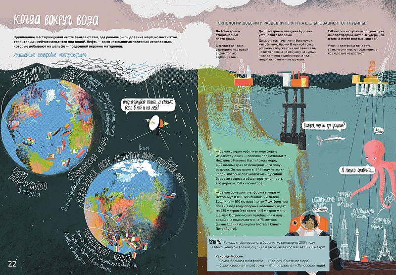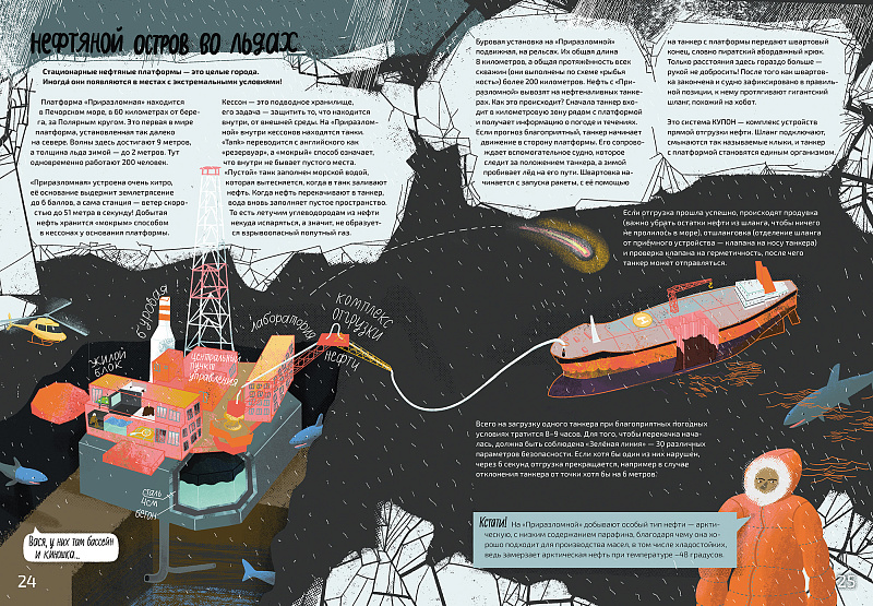 Эта книга расскажет тебе, как добывают нефть из-под земли и из-под воды, проведёт по необычным городам — добывающей платформе и нефтеперерабатывающему заводу. Покажет, как устроены бензоколонка и автомобильный двигатель. Ты узнаешь, почему летают самолёт и ракета, чем питаются котельная и корабль и для чего на заводе по производству моторных масел нужны свинки. Поймёшь, какие опасности несёт добыча нефти для здоровья нашей планеты и как можно их избежать.