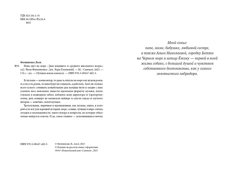 Трогательная, лиричная и вдохновенная, как музыка, книга, в которой есть всё для хорошей истории: море, солнце, лучшая в мире собака, загадки и неожиданности, много юмора и вопросов, на которые обязательно найдутся ответы. И да, самое главное — исполнившиеся мечты.