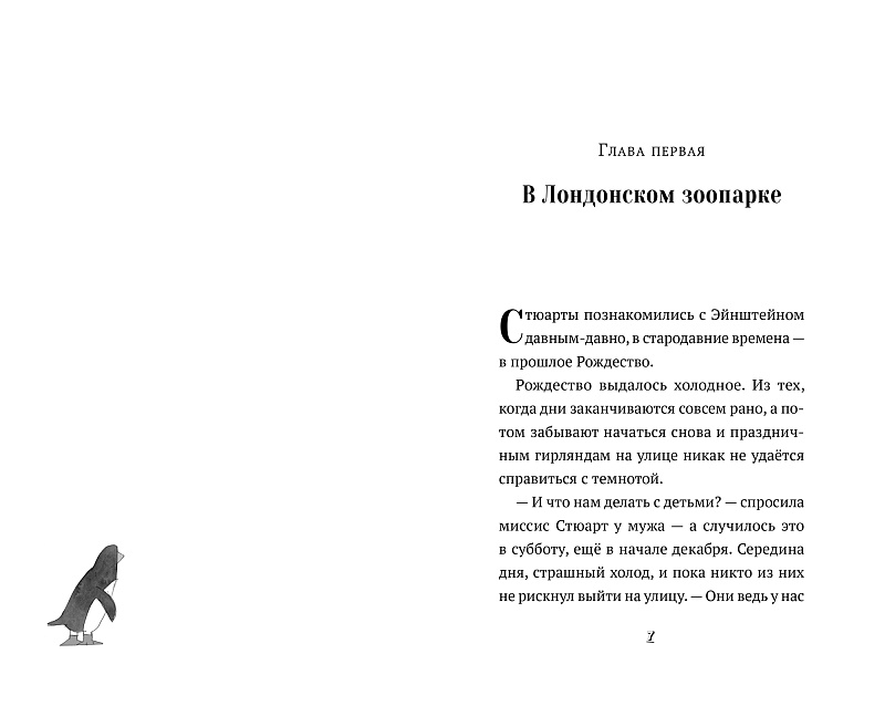 <p> Морозным декабрьским днём Стюарты знакомятся в Лондонском зоопарке с очаровательным маленьким пингвином. К радости девятилетней Имоджен и её брата Артура, их мама тут же приглашает пингвина приходить в гости когда вздумается. Чего Стюарты не ждут — так это того, что в тот же вечер пингвин появится у них на пороге, с рюкзачком с надписью «Эйнштейн» на спине. Но ведь Эйнштейн не может остаться у Стюартов навсегда?.. </p>