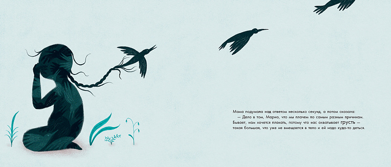 Эта поэтичная иллюстрированная книга напомнит о том, что слёзы потихоньку напитывают нас, помогают нам расти, успокаивают нас и бальзамом ложатся на наши раны. И о том, что плакать можно всем: и девочкам и мальчикам, и маленьким и взрослым, и сильным и слабым…
