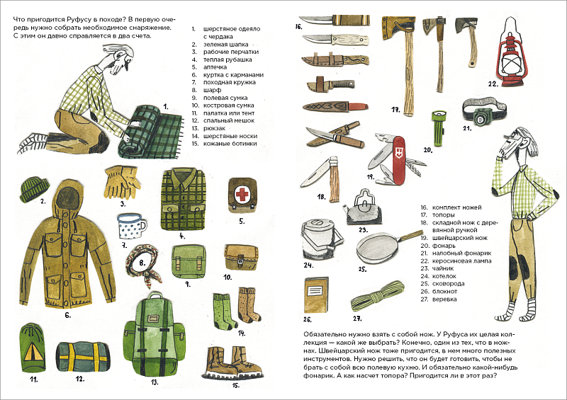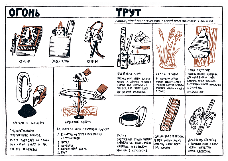 • Инструкция по разведению костра и список необходимых в лесу вещей.