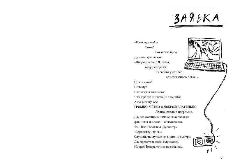 ЕН: Всё началось с черновика главы «Жёлтый» – стихотворение я написала, наблюдая за пригородными школьными автобусами. Начала раскручиваться история о подростке из небольшого городка или посёлка. Как он в нём оказался? Родился или переехал? Какая у него семья? Кто его друзья? Чем интересуется? И вот в прошлые новогодние каникулы, поняв, что готова заняться собиранием рассыпанного пазла, я написала главу «Заявка», в которой главный герой – Рома Турбин третьего января рассказывает о себе, записывая видео для школьного проекта. Так, приветствием «Всем привет!» началась история, конец которой тогда был совершенно не понятен. Текст быстро зажил свой жизнью. В сюжет вплетались наблюдения, личный опыт и истории учеников – например, про чилийских белок, которых купили без спросу и спрятали в комнате.