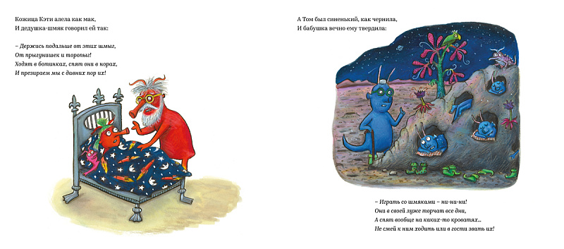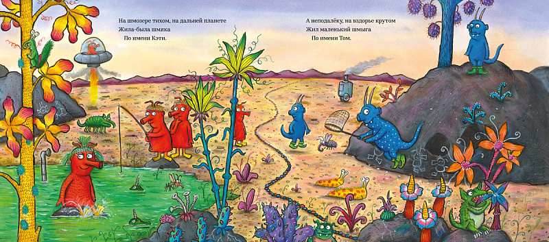 <i>На шмозере тихом, на дальней планете</i><br> <i>Жила-была шмяка по имени Кэти.</i><br> <i> А неподалёку, на вздорье крутом</i><br> <i>Жил маленький шмыга по имени Том.</i><br> Однажды на далёкой-далёкой планете встретились и полюбили друг друга Том и Кэти. Но Том шмыга, и, как все шмыги, он синий, как чернила. Кэти же - шмяка, и, как все шмяки, она красная как мак. А всем с давних пор известно, что шмыгам и шмякам не бывать друзьями.<br> Что же будет, когда их родня и соплеменники обо всём узнают?<br>