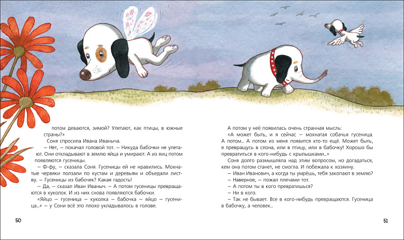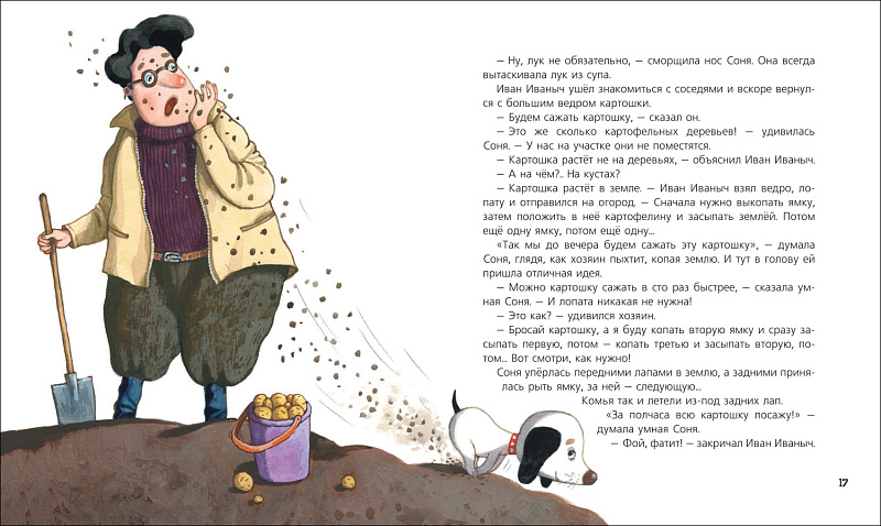 В этой книжке вы прочтете новые истории об умной и знаменитой собачке Соне. Хозяин Сони Иван Иваныч купил домик в деревне, и они на все лето переехали на дачу. А там Соня сажала картошку, удирала от злого быка, варила вишневое варенье, и даже запахи лета в банки закатывала, а еще нашла новых друзей, которые научили ее петь новую собачью песню.