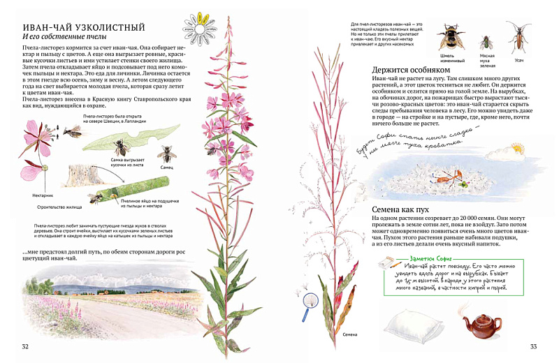 Муравьишка Софи приглашает тебя в путешествие по миру цветов. Как живут цветы? Каких насекомых привлекают? Существуют ли цветы, которые едят насекомых? Это лишь некоторые из вопросов, на которые Софи попытается найти ответы. Ее исследование начинается ранней весной. Вместе с Софи читатель отправится к двадцати дикорастущим растениям. Каждое из них нарисовал мастер ботанической иллюстрации, в окружении насекомых, с которыми этот цветок взаимодействует в течение своей жизни. Следуй за Софи, и ты узнаешь, как определять время по кувшинке, зачем венерин башмачок ловит пчел и почему купырь обожает выхлопные газы.