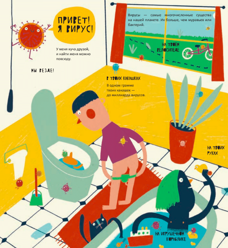 Книга научит детей чаще мыть руки (за эти 20 секунд можно дважды спеть «С Днём рождения тебя!»), не трогать лицо и глаза грязными руками и объяснит, что такое пандемия и как происходит передача вируса.