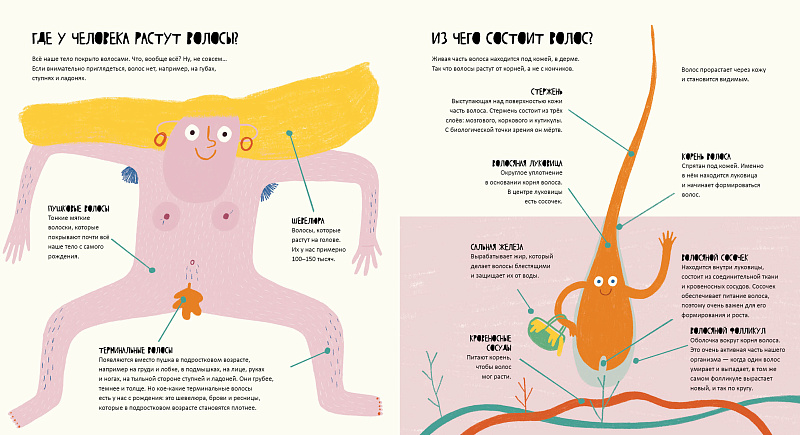 Волосы растут не только на голове, а практически по всему телу. Поэтому сначала внимательно изучаем книжку, а потом — себя!