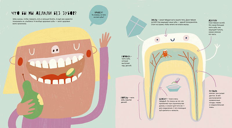 Ой-ой-ой, мой зуб! Все любят сладости: шоколадки, печенье, леденцы. Только вот нашим зубам это не нравится. Иногда даже приходится ходить к стоматологу — жуть! Но если узнать всё о зубах и правильном уходе за ними, то походы к врачу наверняка станут не такими уж и страшными. Внутри ты найдёшь ответы на вопросы: