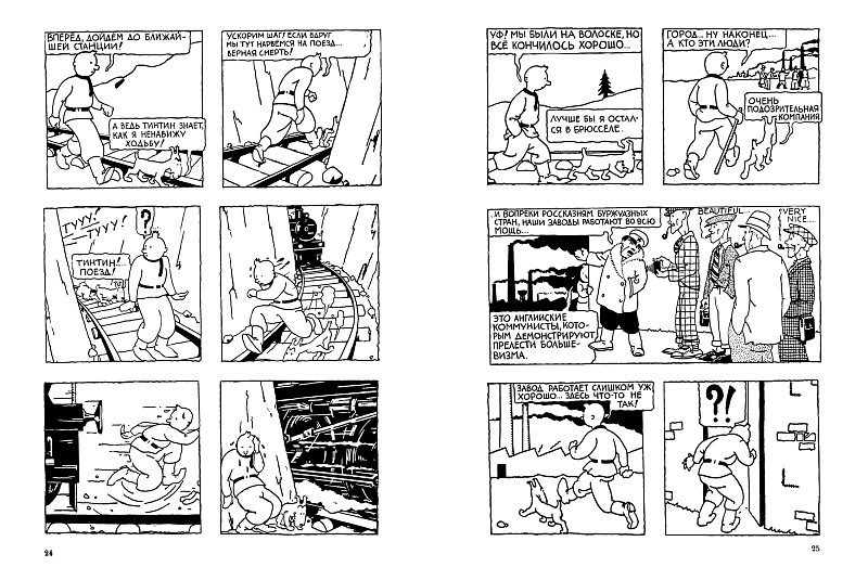 <p> «Приключения Тинтина» — легендарная серия комиксов бельгийского художника Жоржа Реми, публиковавшегося под псевдонимом Эрже, о неутомимом репортёре Тинтине и его верном друге — фокстерьере Милу. </p> <p> «Тинтин в стране Советов» — первый альбом серии (1929), с которого началось грандиозное шествие главного детища Эрже по всему миру. В нём Тинтин и Милу по заданию журнала «Малыш XX век» отправляются в СССР, чтобы показать читателям, как и чем живёт эта загадочная страна. Юному репортёру понадобятся невероятная смекалка, находчивость и упорство, чтобы выйти сухим из всех передряг. </p> <p> </p> <p style="text-align: left;"> Книга будет интересна поклонникам творчества Эрже, исследователям девятого искусства и всем любителям приключенческих историй. </p> <p> <i><br> </i> </p> <p> </p> <p style="text-align: right;"> <i>«Тинтин в стране Советов» предоставляет читателям уникальную возможность взглянуть на ранние работы одного из величайших комиксистов всех времён.</i><br> Publishers Weekly </p> <p style="text-align: right;"> </p> <p style="text-align: right;"> <i>Эрже старался держаться подальше от политики, стараясь апеллировать не к сиюминутным, а к общечеловеческим ценностям. Однако в начале творческого пути он не обладал ни достаточным весом, ни достаточным жизненным опытом для того, чтобы в полной мере реализовать эти убеждения на практике. Поэтому совершенно неудивительно, что со временем, когда Тинтин стал мировым феноменом, Эрже запретил переиздавать «Тинтина в стране Советов», считая его «ошибкой молодости». И лишь в 1999 году, к семидесятилетию персонажа, альбом был наконец официально включён в серию и стал доступен широкому кругу читателей.</i><br> Михаил Хачатуров, исследователь европейского комикса </p>