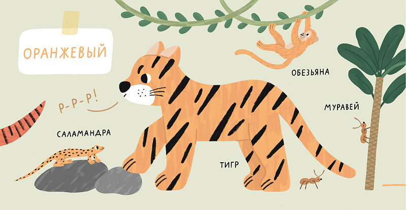 • Попробовать отыскать и узнать все цвета, животных и растений в джунглях на последнем развороте;