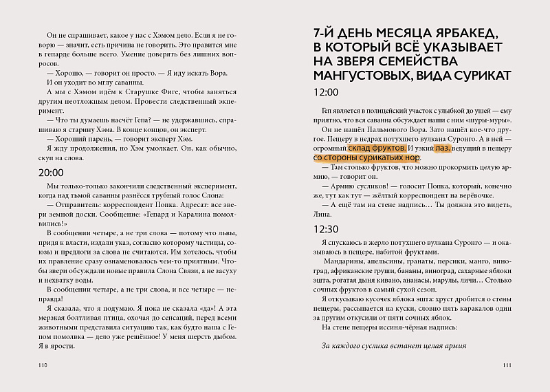 Дальнее Редколесье — одно из самых опасных мест на земной доске. Здесь каждому зверю есть что скрывать и у каждого имеется своё тёмное прошлое. Не важно, кто правит этим жестоким, выжженным солнцем лесом — клан жирафов или прайд львов, — древний закон саванны неизменен и беспощаден: сильный жрёт слабых.<br> <br> Местная жительница каракал Каралина могла бы улететь в благополучный Дальний Лес с «Аистиным клином», ведь там её ждёт не только возлюбленный Барсукот, но и работа в полиции. Но если она станет барсуком полиции там, кто же будет каракалом полиции здесь? Кто добьётся справедливости для копытных, пернатых, мангустовых, членистоногих и прочих бесправных обитателей Редколесья? Кто раскроет сложное дело? Кто поймёт, что преступник не только подделывает кокоши, но и совершает куда более зверские преступления? Кто запишет ответы на проклятые вопросы в дневник?<br> <br> «Тёмное прошлое» — пальмовый дневник дикой кошки саванны и новая книга Анны Старобинец из серии «Зверский детектив». Нет сомнений, что барсуки полиции — непревзойдённые сыщики, но обратите внимание: на другом конце бескрайней Земной Доски открылось своё отделение, и каракалы полиции теперь тоже в деле!<br> <br>