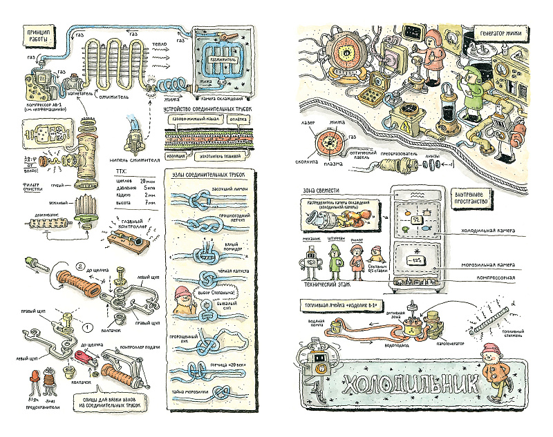 На страницах этой красочной энциклопедии автор раскроет тайны устройства 26 бытовых приборов, среди которых холодильник и стиральная машины, вентилятор и дверной замок, фотоаппарат, машинка для удаления катышков, тостер и многое другое. Вы точно удивитесь и хорошенько посмеетесь, ведь внутри всё устроено не так, как вы думали. Да-да, бытовая техника хранит много секретов!