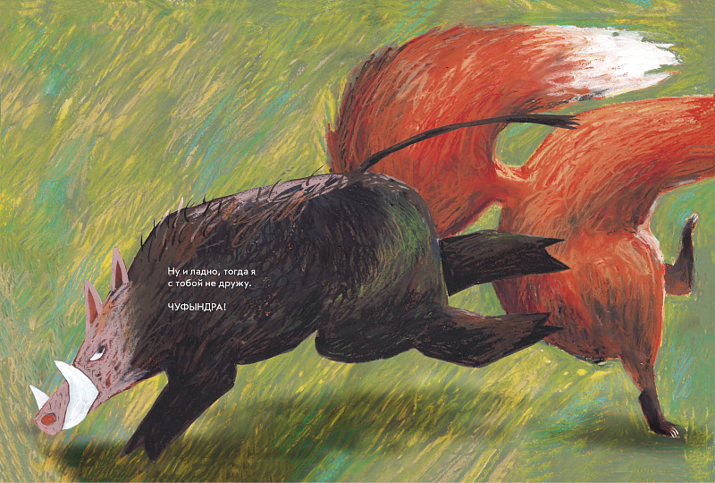 Привет! Я кабан. Играть со мной — одно удовольствие! У меня всегда куча интересных идей. Вот только с самого утра я только и слышу: «потом», «попозже», «приходи вечером». Другие кабаны отъедаются к зиме, ежи утепляют норы, а летучие мыши вообще дрыхнут посреди дня. Неужели они не понимают, что мне скучно? А играть один я не буду. Я ужасно на них злюсь. А чего они вредничают? Друзья, называется! Никакие они не друзья, а противные вонючки, вот!