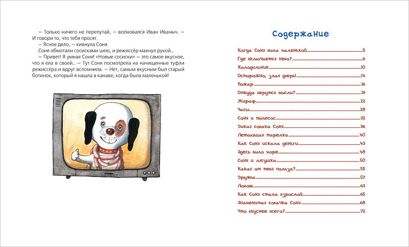 Долгожданное продолжение суперпопулярной истории об умной собачке Соне классика современной детской литературы Андрея Усачева, где читатели обязательно вновь встретятся со старыми героями и познакомятся с новыми, а еще узнают, что может быть вкуснее сосисок, кто разбил собачке Соне сердце, как она снялась в рекламе, научилась определять время и, конечно, как она стала знаменитой. Как всегда, собачка Соня учится на своих ошибках и делает правильные выводы. Проиллюстрировал книгу замечательный художник Евгений Антоненков.
