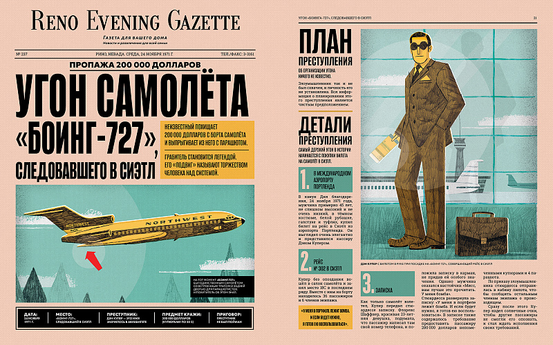 Иллюстрированная хроника самых дерзких преступлений за последние 150 лет: похищение «Моны Лизы» из Лувра, Великое ограбление поезда, дело Дэна Купера об угоне «боинга» и другие нашумевшие преступления. Замечательные иллюстрации повторяют оформление обложек и заголовков прессы того времени.